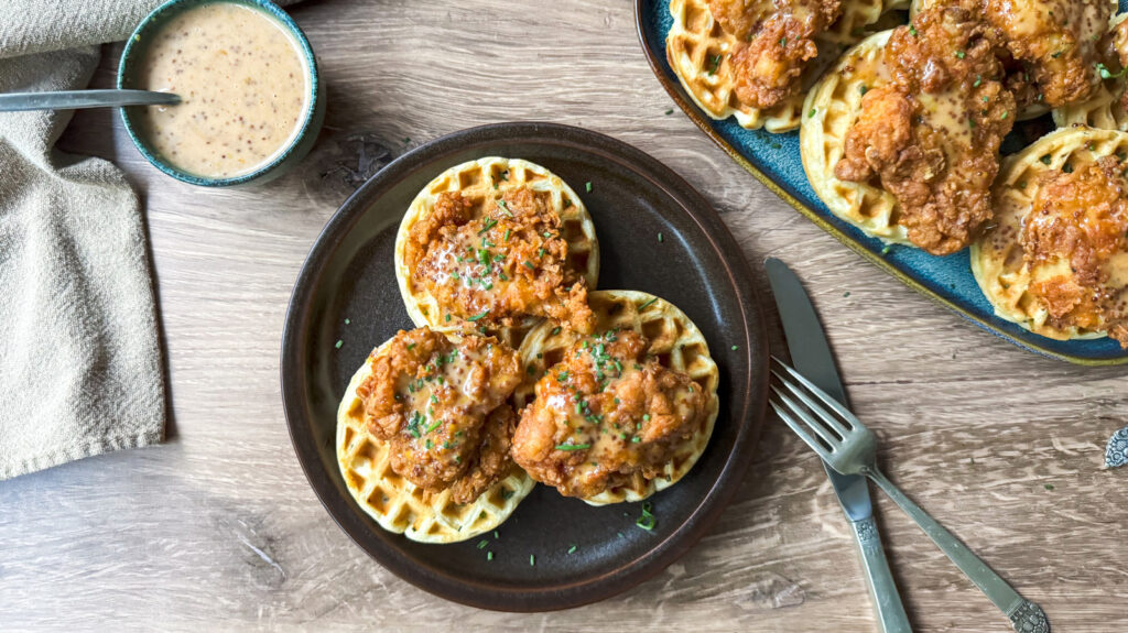 Receta Vegana de Gofres Crujientes con "Pollo" al Suero Dulce y Salado
